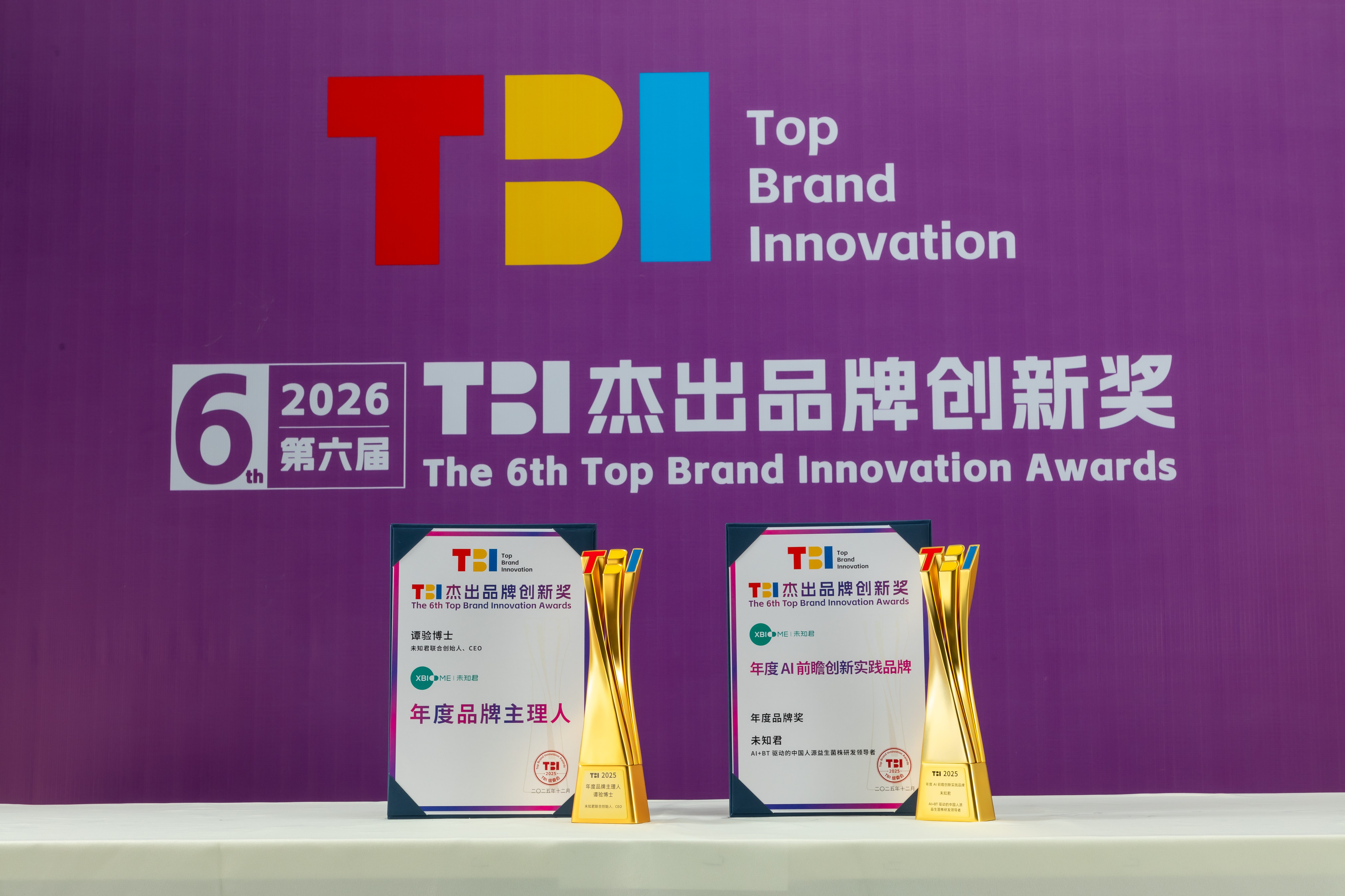 1月16日,第六届TBI杰出品牌创新峰会在上海闭幕,备受行业瞩目的TBI杰出品牌创新奖获奖名单正式揭晓。未知君凭借在AI驱动的益生菌研发领域的雄厚科研实力及产业影响力,斩获“年度AI前瞻创新实践品牌”奖;联合创始人、CEO谭验博士凭借对行业的引领性贡献,荣膺“年度品牌主理人”称号。