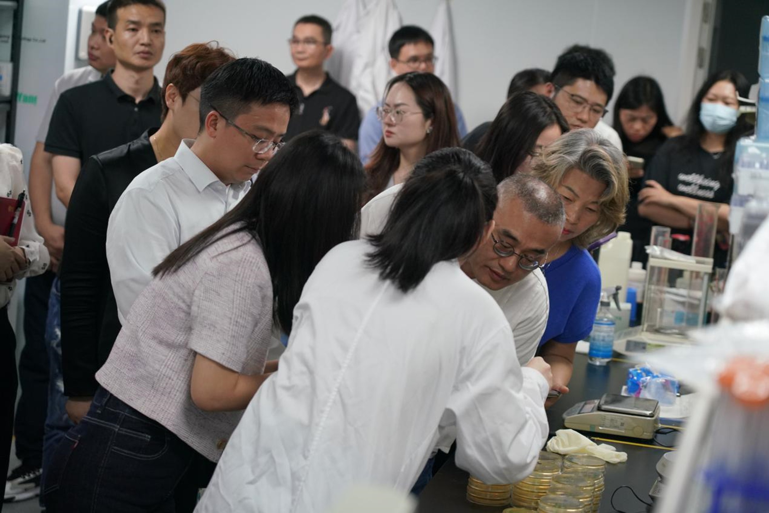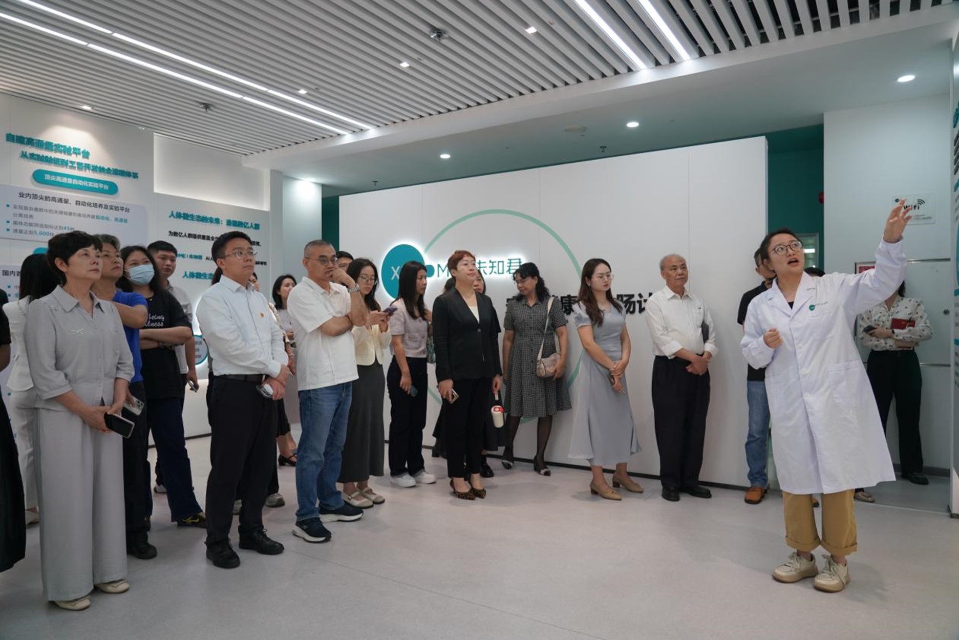 活动中,南山区非公企业党员、企业家代表实地参观了未知君展厅和微生态研发实验室,全景式了解肠道菌群与疾病、健康的广泛联系,沉浸式感受未知君的“AI+BT”技术平台从菌株发现到功能验证、机制研究再到产品开发、临床试验的全产业链技术能力。参观者透过显微镜查看了未知君自研专利菌株的图像,并了解到,上述菌株均已完成商业转化,陆续作为各大合作品牌益生菌产品的配方,来到万千消费者身边。先进的科研设备、严谨的研发流程,让在场党员对深圳生物医药创新实力有了更直观的认识。
